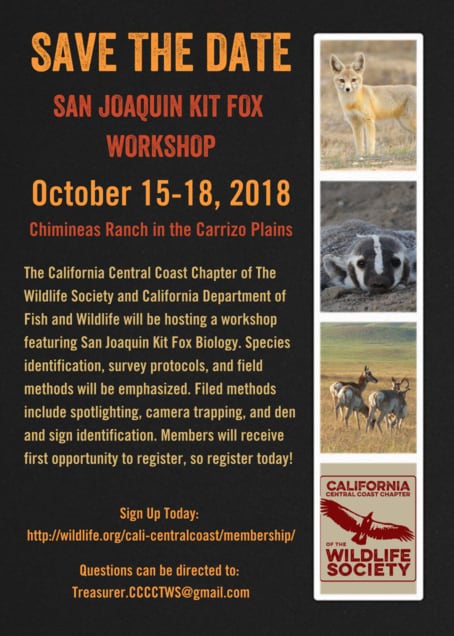 September 28-October 1, 2015: San Joaquin Kit Fox Workshop – Click here for more information