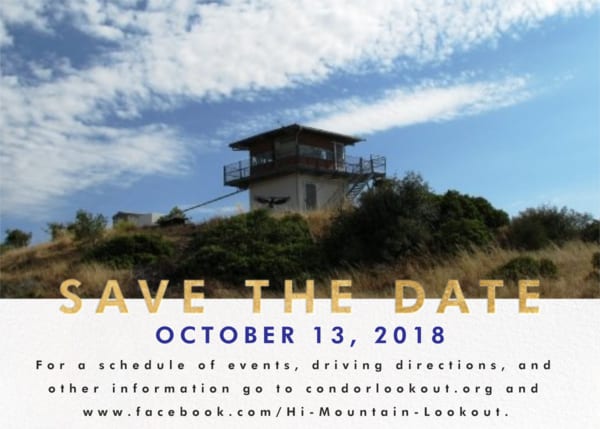 October 8, 2017: 16th Annual Hi Mountain Condor Lookout Open House and Social Event