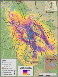 By understanding the routes the bears might take, van Manen said, land managers can plan movement corridors, transportation officials can consider mitigating highway barriers in their way and communities can be ready to prevent grizzlies from appearing at trash cans and bird feeders.