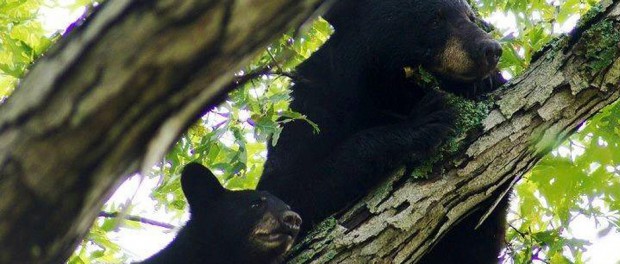 A black bear and its cub lounge in a tree. In a recent study, scientists genetically mapped black bear populations in the continental United States, Canada and Alaska.