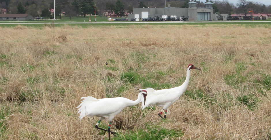 Whooping cranes, a federally listed endangered species, are listed as a non-essential experimental population in Wisconsin. Wildlife Services-Wisconsin provides wildlife hazard assistance to Volk Field Combat Readiness Training Center, but between the weekly onsite management visits, a whooping crane pair had built a nest and laid eggs adjacent to the runway.
