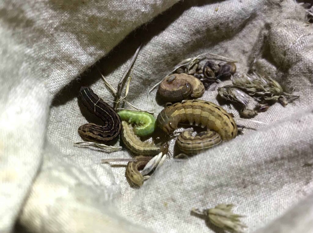 The team also looked for caterpillars in meadows during winter 2019-2020. They swept nets over the grass, capturing the caterpillar stage of species like pebble prominent moths (Notodonta ziczac) and elephant hawk moths (Deilephila elpenor).