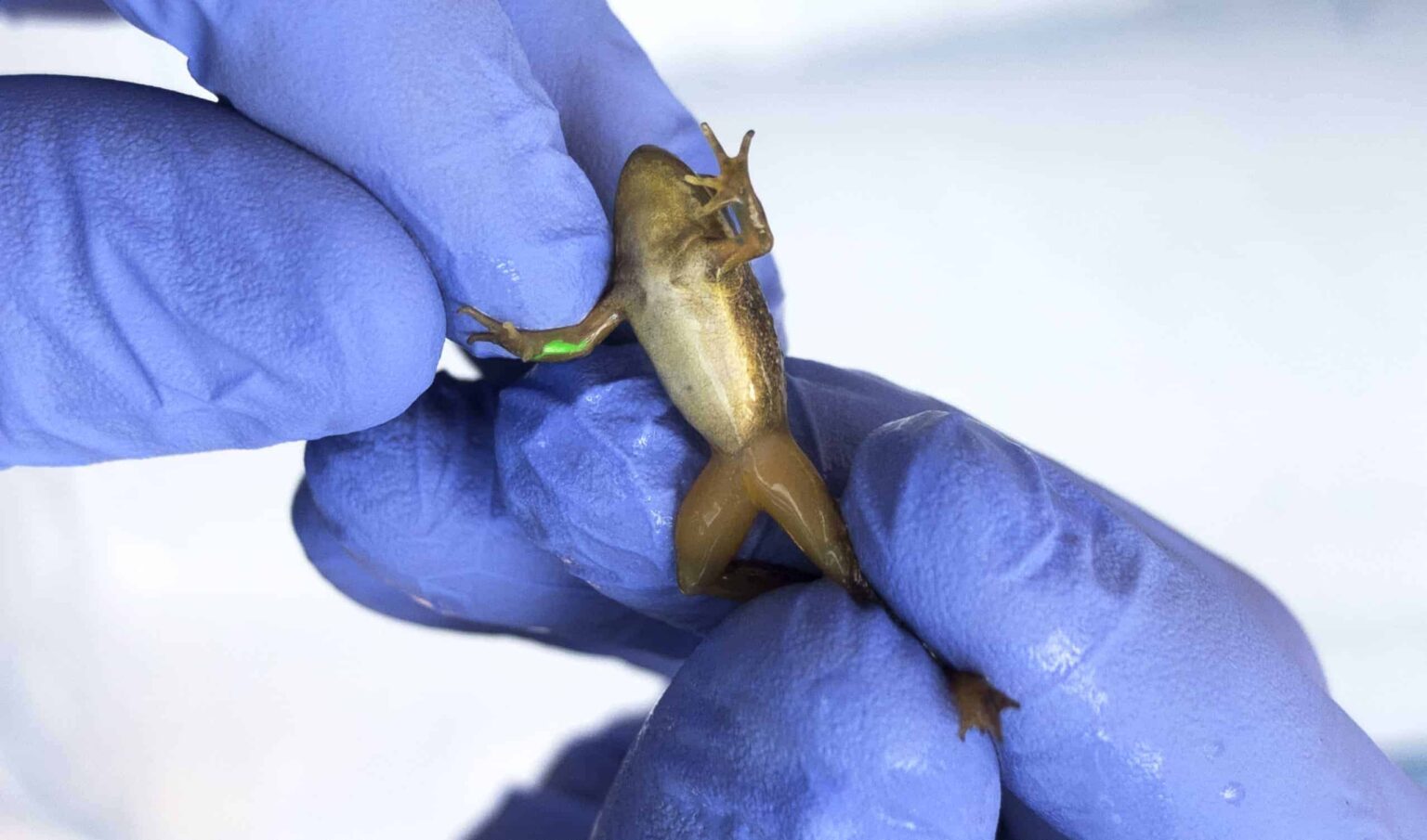 They then injected a colored polymer under the skin of each frog that would later identify the frogs as having been treated and released them back where they were found. The team also captured an additional 146 recently metamorphosed frogs, marked them with a different color, and released them as a control population without treatment.