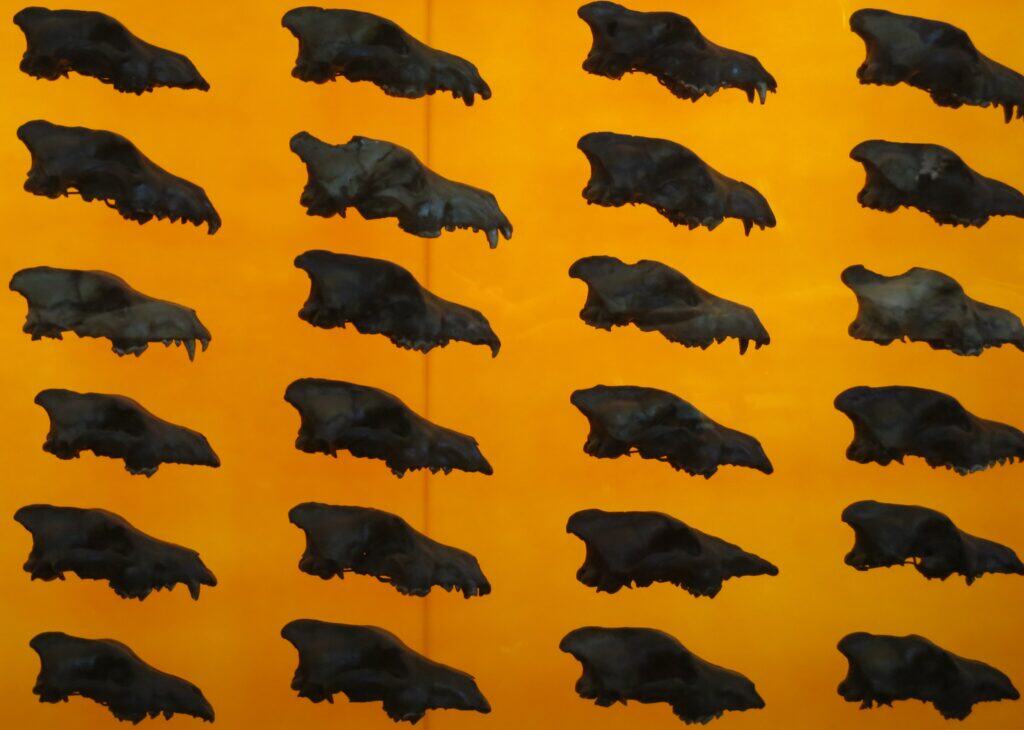 Dire wolves (Aenocyon dirus), a canid species, lived during the Pleistocene Epoch. They first appeared in North America and split off from a common ancestor with gray wolves about 5.7 million years ago, according to DNA comparisons published in Nature in 2021. “In contrast to numerous examples of hybridization across Canidae, there is no evidence for gene flow between dire wolves and either North American gray wolves or coyotes,” Angela Perri and her coauthors stated in the paper. The “highly divergent lineage” likely evolved in North America, much earlier than when the ancestor of gray wolves and coyotes (Canis lupus) colonized the continent.