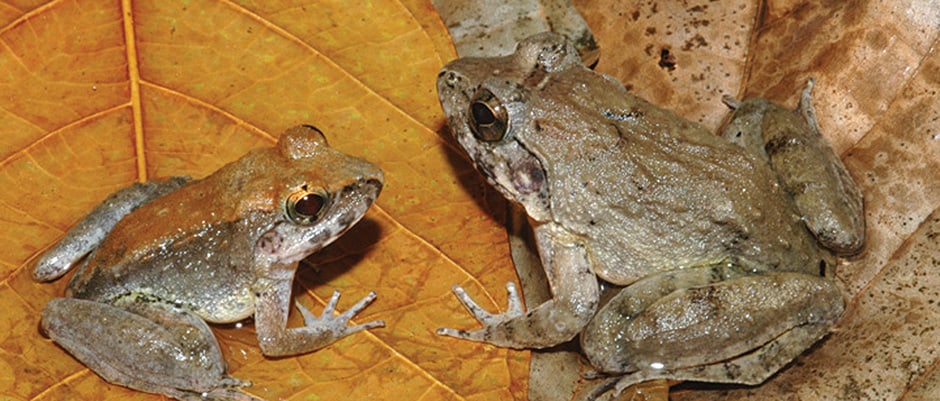 On Sulawesi, an island in central Indonesia, Jim McGuire searched for Limnonectes larvaepartus, a small species of fanged frog with a unique strategy for reproduction. McGuire, a herpetologist with the Museum of Vertebrate Zoology and the University of California, Berkley, had returned with his research team to a spot where he knew the frogs would likely be. When he found a frog sitting in a puddle, he was worried the activity around him would cause the frog to hop away, so McGuire reached down to pick it up, and “out came tadpoles into my hands,” he said. McGuire experienced first hand the pregnant fanged frog giving birth to tadpoles instead of laying eggs — the only frog known to do so, according to a new online study published in Plos One.