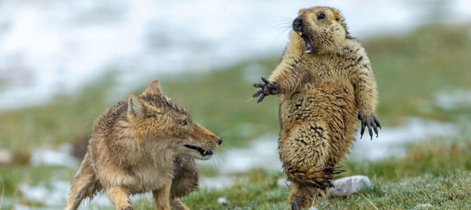 An hour earlier, the marmot had spotted the fox on the slopes of China’s Qulian Mountains. It raised an alarm, but the fox lay low, waiting. When the marmot emerged in search of food, photographer Yongqing Bao captured this image of the two species converging. The image won Bao the Wildlife Photographer of the Year 2019 award from London’s Natural History Museum.