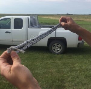 The teams work throughout the month of August, a time when the climate fluctuates between comfortably cool and nearly 100 degrees. The days are long — on average, biologists spend 11 hours in the field every day to band as many birds as possible. Banding is a complex process that requires intense focus, patience, a steady hand and an advanced knowledge of waterfowl. The trapping sites are typically the same every year, strategically selected to maximize the capture of most waterfowl, with priority species being mallard (Anas platyrhynchos) and Northern pintail (Anas acuta). Working in teams, biologists set up and bait portable “swim-in” 8 foot x 8 foot welded wire-mesh traps that minimize injury to the birds. Each is baited with barley purchased from local farmers. The barley is placed in the water and on Styrofoam floats that are topped with a piece of plywood, which provides the ducks a place to rest and dry off. Traps are placed 30 feet from the shore to reduce the likelihood of coyotes, raccoons, and mink capitalizing on easy prey.