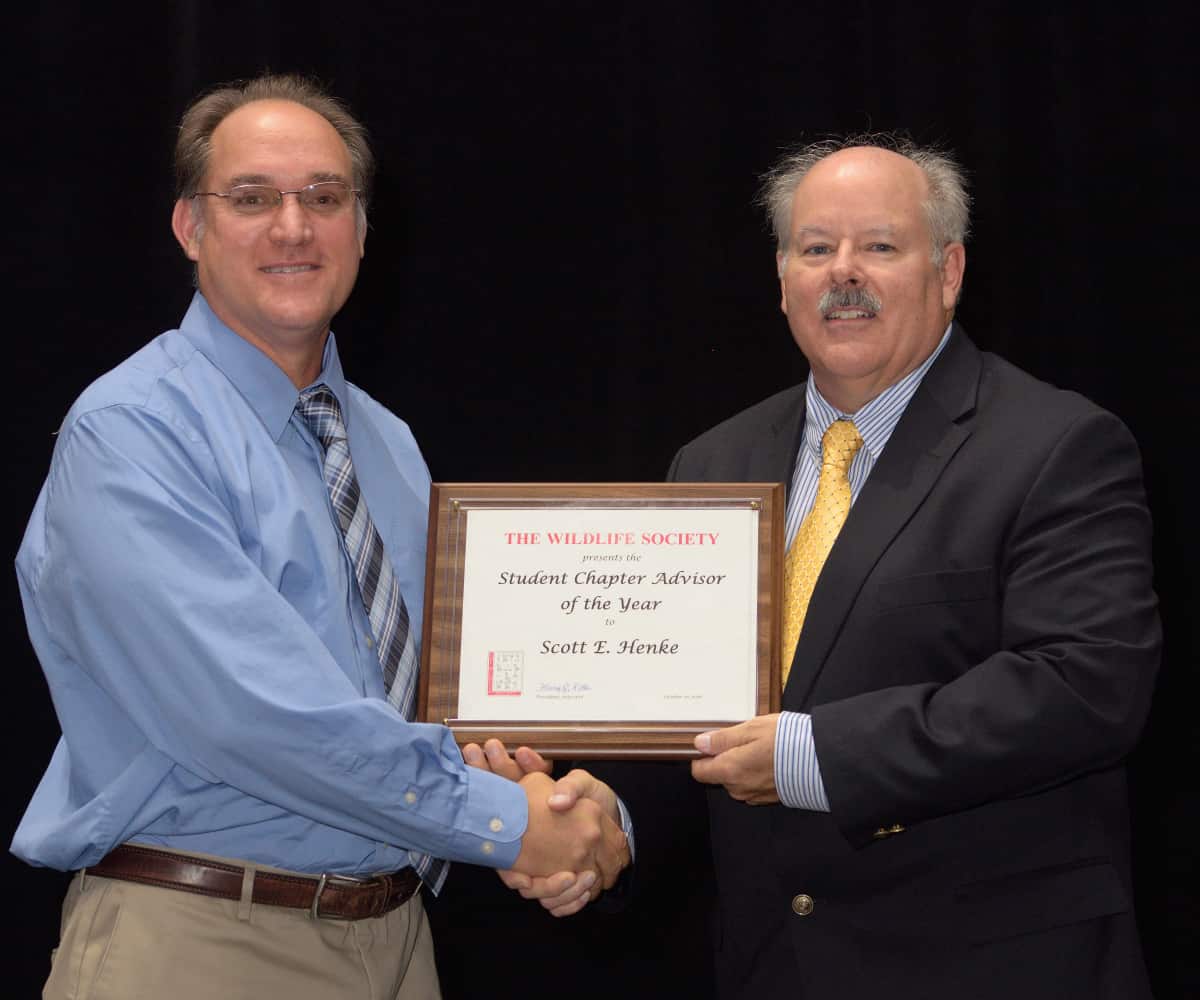 Scott Henke received the Student Chapter Advisor of the Year Award. He is a regent’s professor and chair of the Animal, Rangeland and Wildlife Sciences Department at Texas A&M University – Kingsville and a research scientist with the Caesar Kleberg Wildlife Research Institute.