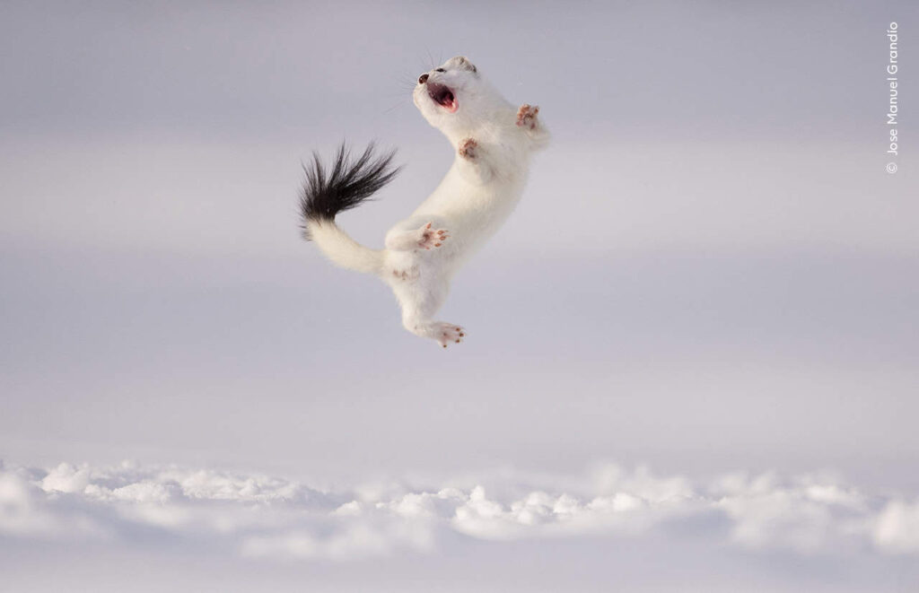 Leaping sharks and stoats, jaguars killing caimans and a temperamental image of lions post-mating while storm clouds are brewing make up some of the photos in the running for the London Natural History Museum’s annual Wildlife Photographer of the Year. During the 60th anniversary of the exhibition, the museum’s contest judges will select between nearly 60,000 anonymous entries from 117 countries. “In this selection you see species diversity, a range of behavior and conservation issues,” said Kathy Moran, the chair of the judging panel, in a press release. “These images represent the evolution of the competition through the years, from pure natural history to photography that fully embraces representation of the natural world—the beauty and the challenges.” The winners of the contest will be announced Oct. 8, 2024. Here are a few of the entries.