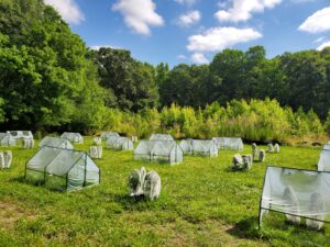 She took her experiments to the field to test how warmer temperatures and milkweed species would affect both the parasite’s strength and the caterpillars’ ability to fight it. Following a similar protocol to Peel’s experiments, Ragonese grew two different species of milkweed, tropical and swamp milkweed (Asclepias incarnata), in either ambient temperatures or in small greenhouses. She infected half of the caterpillars with OE and reared them on either swamp or tropical milkweed in warm or ambient temperatures. After the caterpillars turned into butterflies, Ragonese measured their parasite loads and other health markers and published her findings in Ecological Entomology.