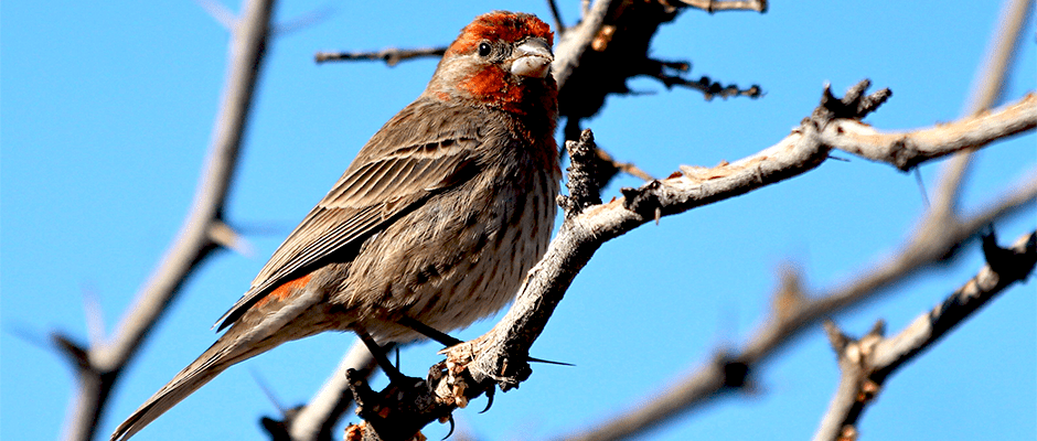 Wild house finches (Haemorhous mexicanus) are changing the timing of their breeding season due to changes in climate, according to recent research. Researchers already knew that many birds were breeding as temperatures warmed earlier, but didn’t yet know if seed-eating birds were also shifting their breeding times. In the study, the research team gathered museum records of house finch nests in California from 1895 to 2007. They then looked at records of spring temperatures in the regions where the nests were found. For every degree Celsius increase in temperature, the team found, the birds were laying eggs about 4 ½ days earlier. This could be a problem for finches, which need to match their breeding time to seed availability. But it may be beneficial if they take advantage of the longer breeding seasons to make more nests and produce more offspring.