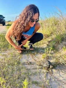 Jackie Ganter is a graduate student in the Environment, Ecology and Energy program at the University of North Carolina at Chapel Hill. She is currently studying the differences in space use of wild and rehabilitated sea turtles, as well as mammal community structure in coastal ghost forests. She also works with the Atlantic Marine Energy Center to investigate the potential interactions between marine energy and wildlife. When she is not studying, she enjoys hiking, kayaking and rock climbing.