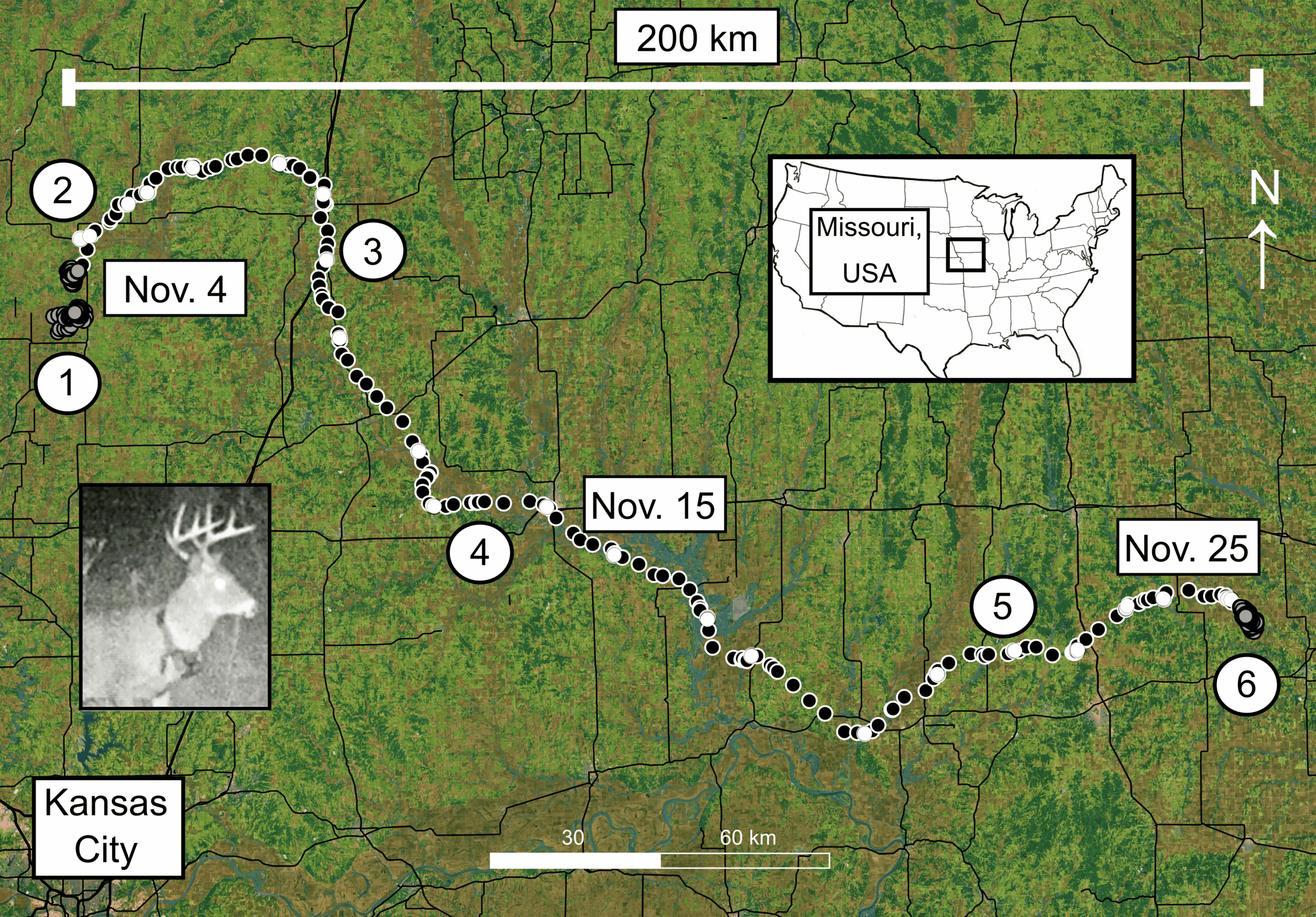 The buck hung around a rural area north of Kansas City for about 11 months. Every five hours, its collar sent location data to researchers.
