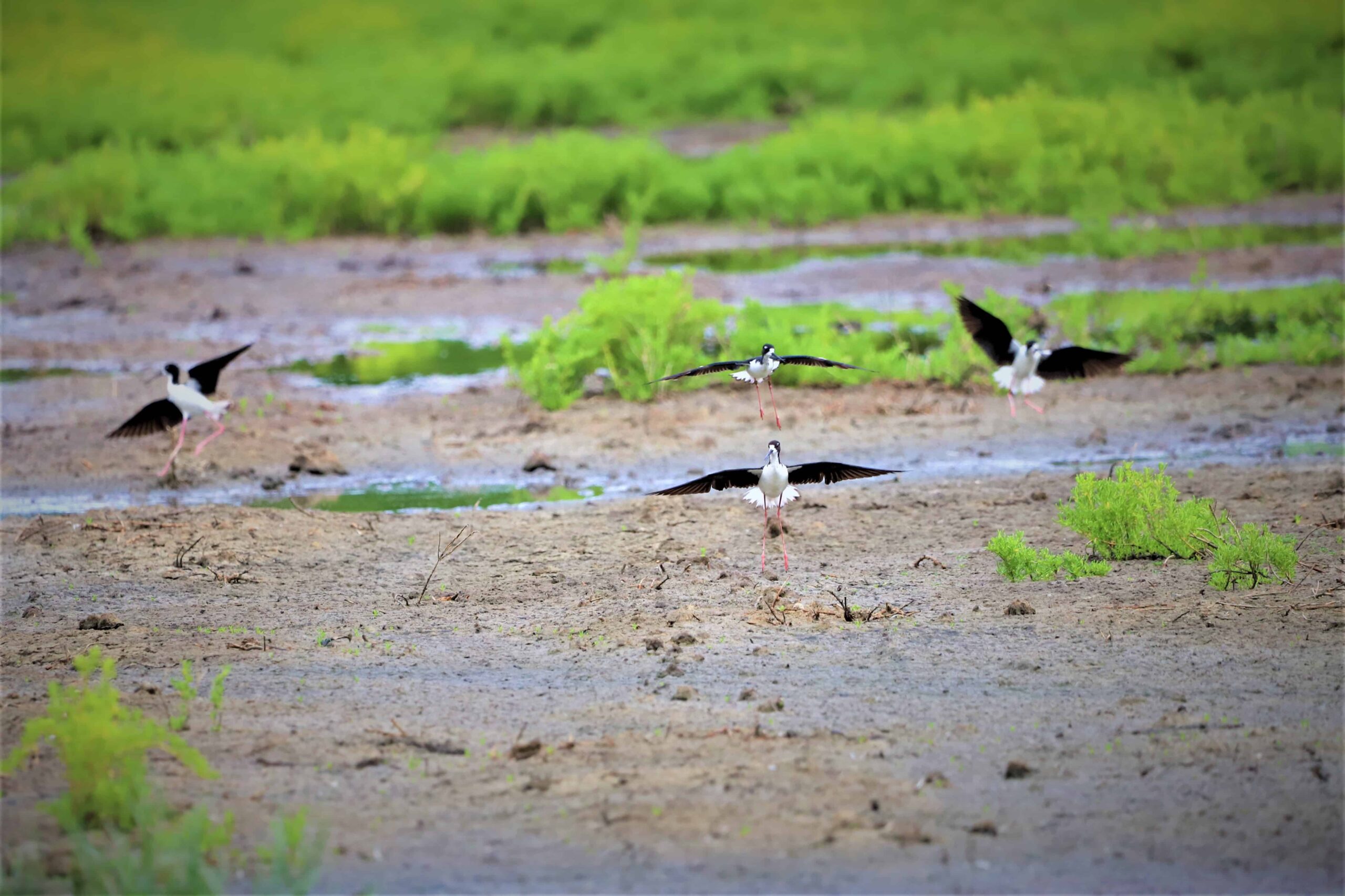 The U.S. Fish and Wildlife Service lists Hawaiian stilts as endangered. The shorebirds have drastically declined due to decades of habitat loss and fragmentation. Invasive species like feral cats (Felis catus), dogs (Canis familiaris) and mongoose (Herpestes edwardsii) also prey on Hawaiian stilts.