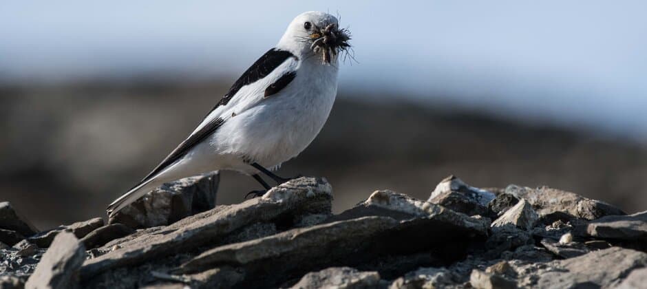 More research would be needed to determine whether heat has an effect on their behavior, but studies in some southern species show that heat-stressed birds will spend more time sitting still and cooling down and less time foraging for food, either for themselves or their nestlings. If the latter case is occurring with snow buntings, it could lead to less reproductive success over time as nestlings aren’t fed as well. This could cause population level impacts as the climate continues to warm.