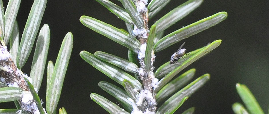 Researchers discovered that two species of tiny flies from the Pacific Northwest will attack and eat hemlock woolly adelgids (Adelges tsugae) on eastern (Tsuga canadensis) and Carolina hemlocks (Tsuga caroliniana).