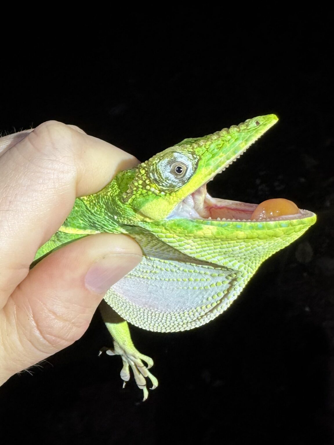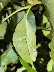 A biology student was the culprit behind the first introduction of Cuban knight anoles in 1952 to the campus of the University of Miami’s north campus in Coral Gables. They have since spread throughout much of the state—especially in urban areas. These lizards are much larger than most anoles, stretching up to 20 inches long, including their tails. They are striking, with vibrant green bodies, yellow stripes with black speckles and baby-blue mascara-like eye shadowing.