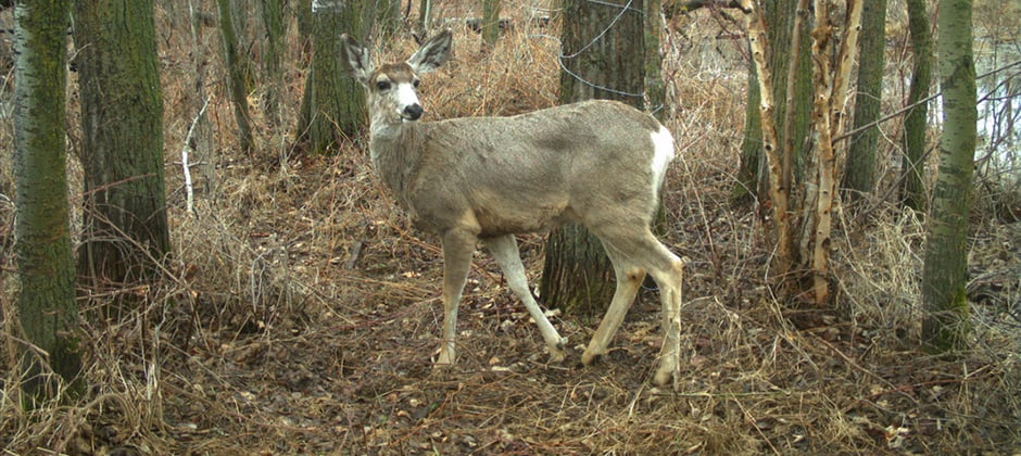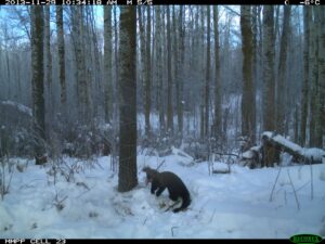 Stewart and her colleagues placed camera traps throughout the protected network of land in the Beaver Hills Biosphere. They recorded 15 mammal species in the photos — white-tailed deer (Odocoileus virginianus), mule deer (Odocoileus hemionus), elk (Cervus canadensis), moose (Alces alces), fishers (Pekania pennanti), coyotes (Canis latrans), long-tailed weasels (Mustela frenata), short-tailed weasels (Mustela ermine), snowshoe hares (Lepus americanus), striped skunks (Mephitis mephitis), porcupines (Erethizon dorsatum), red foxes (Vulpes vulpes), red squirrels (Tamiasciurus hudsonicus), northern flying squirrels (Glaucomys sabrinus) and least weasels (Mustela nivalis).