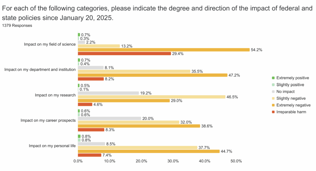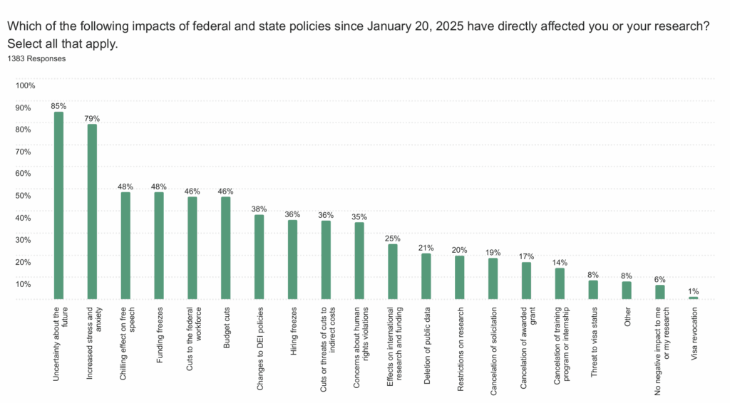 In open-ended survey responses, scientists described widespread disruptions to research, job insecurity, censorship and the erosion of institutional expertise. Their concerns cut across sectors, career stages and disciplines, but the perspective was clear. To them, recent federal actions are undermining the foundations of American science.