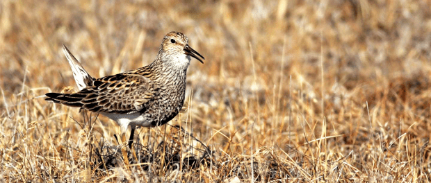 A pectoral sandpiper is one of the Arctic shorebirds that are being exposed to high levels of mercury in Alaska.