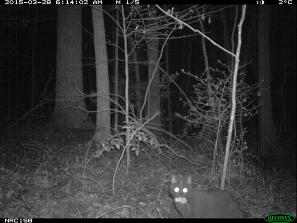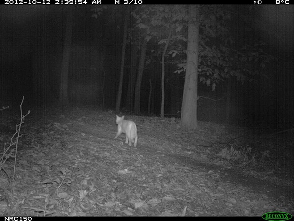 Even areas like Rock Creek Park located in the heart of Washington, D.C. had very few cat shots. Only a single brave cat, walking into the darkness, was captured on cameras compared to 125 coyote pictures taken in the area. “There’s no doubt that coyotes eat cats,” Kays said. “Some cats are stupid, but other cats figure it out.” The smart cats stay out of the wild places where coyotes roam.