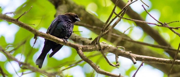 Header Image: A brown-headed cowbird perches on a branch. North American birds’ defenses against parasites likely won’t work on Eurasian cuckoos.