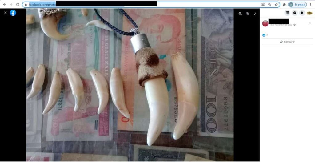 As a result, he and his colleagues conducted a study, published recently in Animal Conservation, delving more deeply into the Mexican market for these parts. They used the same standardized search protocol as the WCS study. For example, they used search terms like “jaguar claw” in both Spanish and English, using the word combinations in searches on various platforms like eBay, Etsy, Facebook, Google and Yahoo!