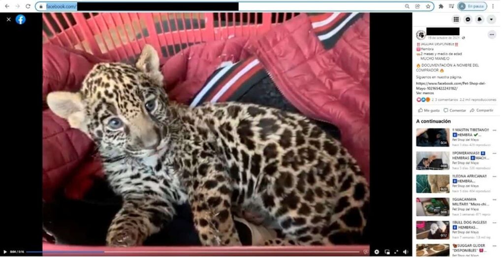 Most of the posts selling jaguar parts were on Facebook, where de la Torre said it’s easier for users to offer these kinds of materials.
