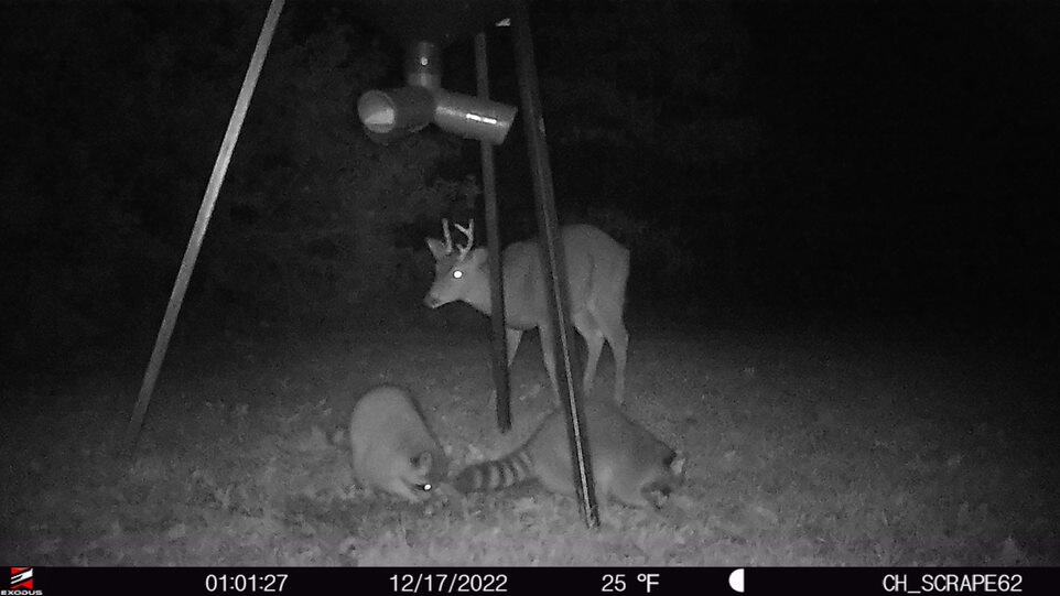The cameras around the feeders with deer exclusion fences revealed that raccoons may be helping disease spread. “That was one of our most interesting results—the raccoon feeders did become contaminated,” Huang said.