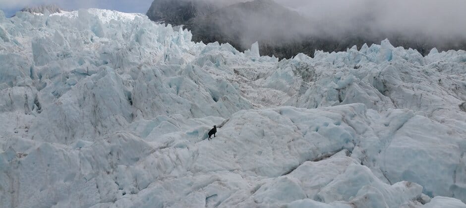 Header Image: Himalayan tahr are well-suited to rugged mountain terrain. They were found crossing snowfields and even glaciers like this one in the Southern Alps. Credit: New Zealand Department of Conservation