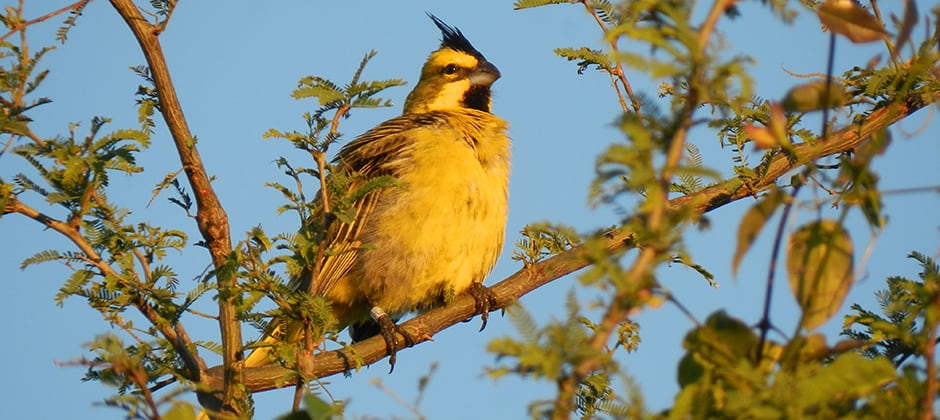 Yellow cardinals (Gubernatrix cristata) are found in Argentina, Brazil and Uruguay, and are considered endangered by the International Union for Conservation of Nature due to loss of habitat from farming, ranching, logging and, particularly, because of poaching. Poachers sell the birds in the pet trade in South America and as far as Europe. The IUCN estimates only a couple of thousand are left in the wild, and Domínguez said that the populations in Argentina are the highest, although “right now the numbers are low everywhere.”