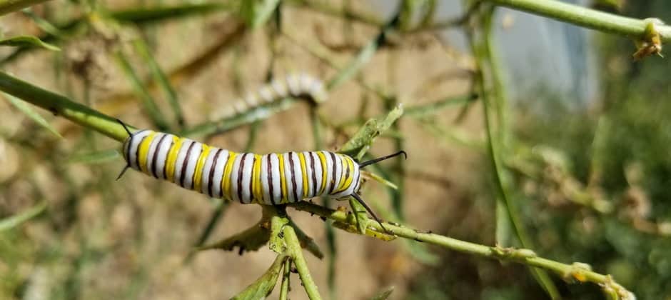 Monarchs lay their eggs on the underside of milkweed leaves, and the larvae, once hatched, feed on the leaves until they pupate into butterflies. Western monarchs, which overwinter along the California coast, have dropped to only about 1% of their estimated numbers in the 1980s. Decreasing milkweed throughout their range is considered one of the reasons monarchs are declining. Climate change may also be partly responsible. But biologists suspect that pesticides use, which can contaminate nearby milkweed, may also play a role.