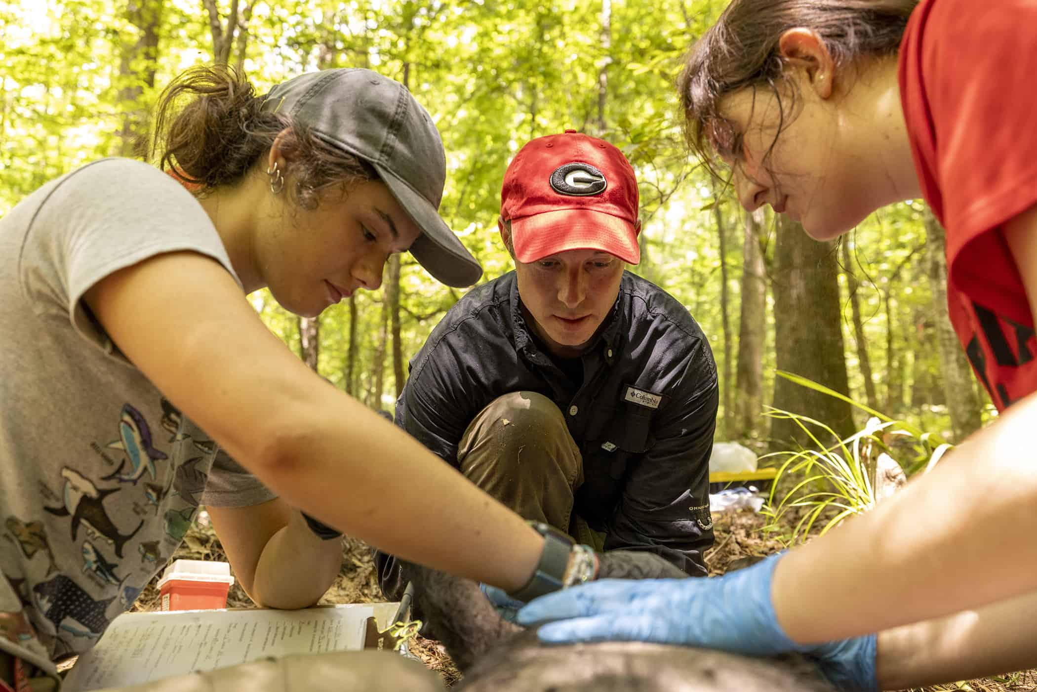 Beasley’s master’s student Lindsay Clontz led a study published in Pest Management Science to find out how factors like temperature, barometric pressure, habitat type and sex influenced wild pigs’ home range size and movement over weekly time periods. Then, they looked at the shape of home range sizes and if different landscape attributes change the characteristics of their home ranges.