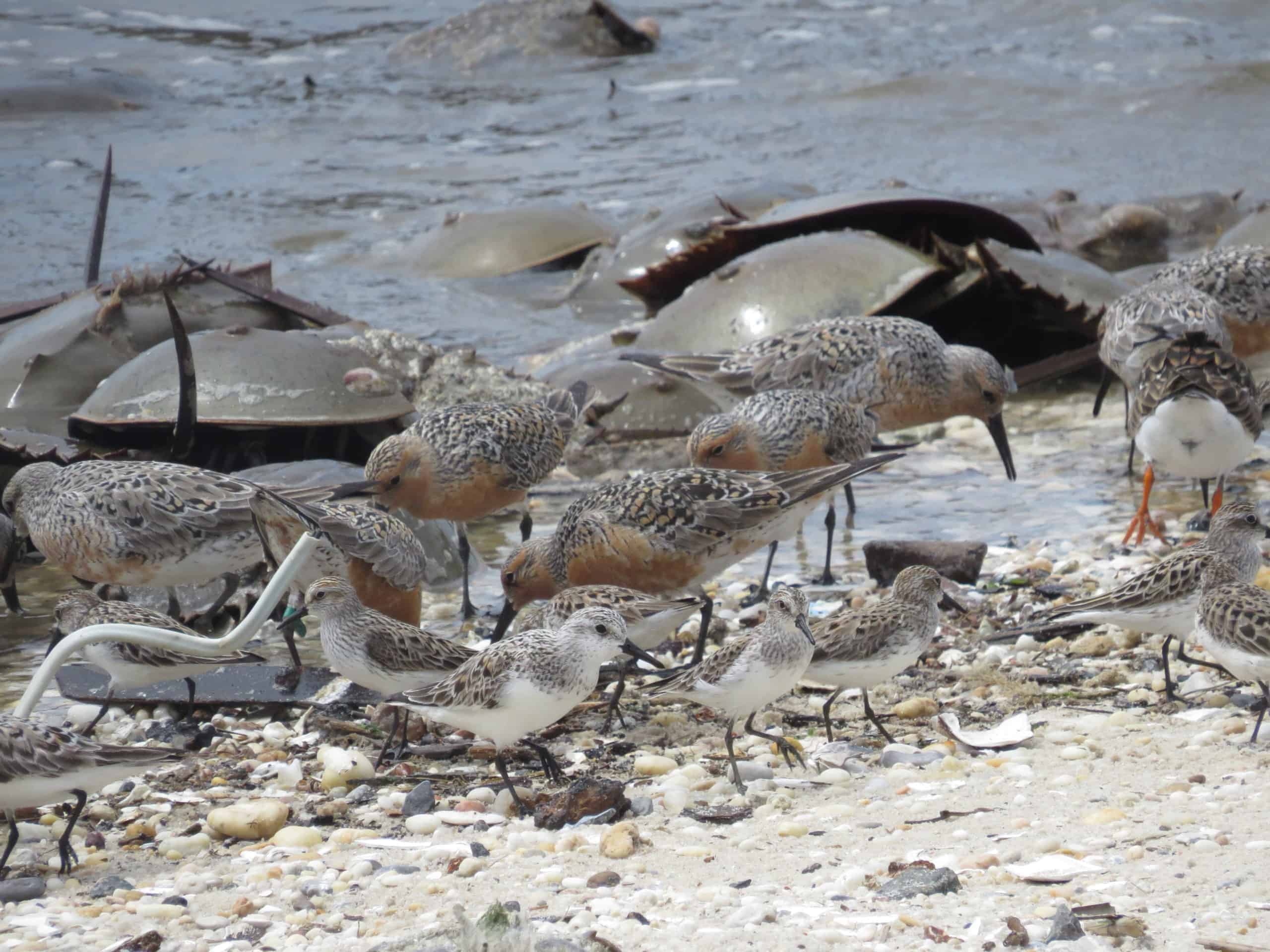 Burger said that the short stopover period for the latter group is likely affecting their reproductive success. While seven days may be enough time to fatten up for the next leg of their voyage to Hudson Bay in good conditions, small issues like storms can stop horseshoe crabs from coming into shallow water to lay their eggs during this period for days at a time. Even a three-day storm can cut their foraging time in half.