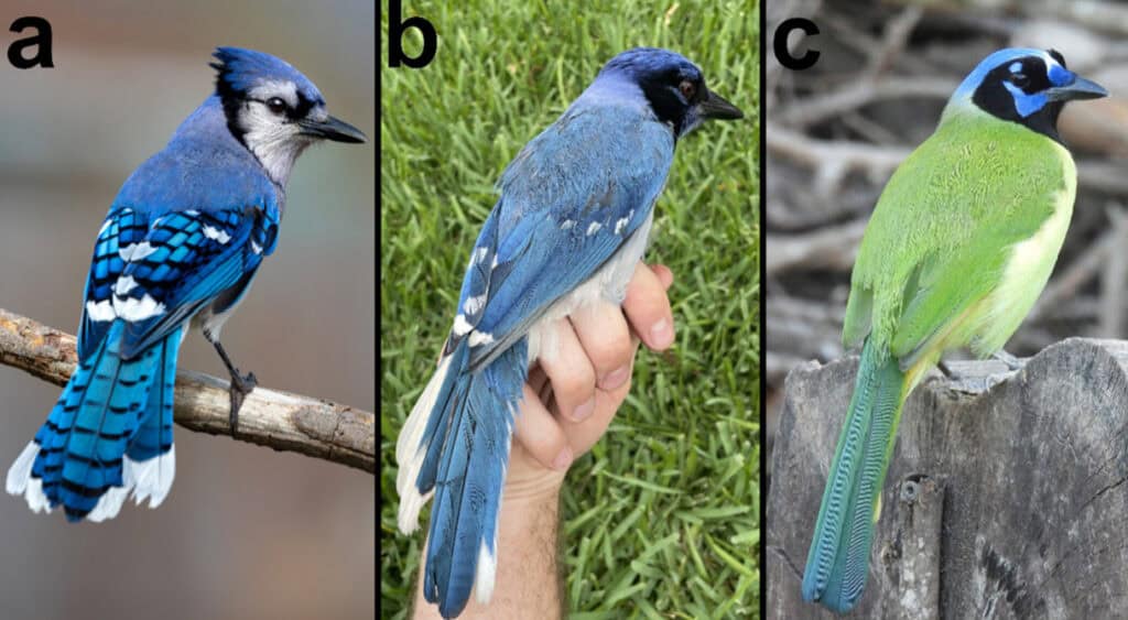 Historically, geography and climate separated the blue jay (Cyanocitta cristata) and the green jay (Cyanocorax yncas). Scientists previously thought the hybridization observed in Texas and published in Ecology and Evolution was improbable. However, scientists have witnessed them hybridizing in captivity.