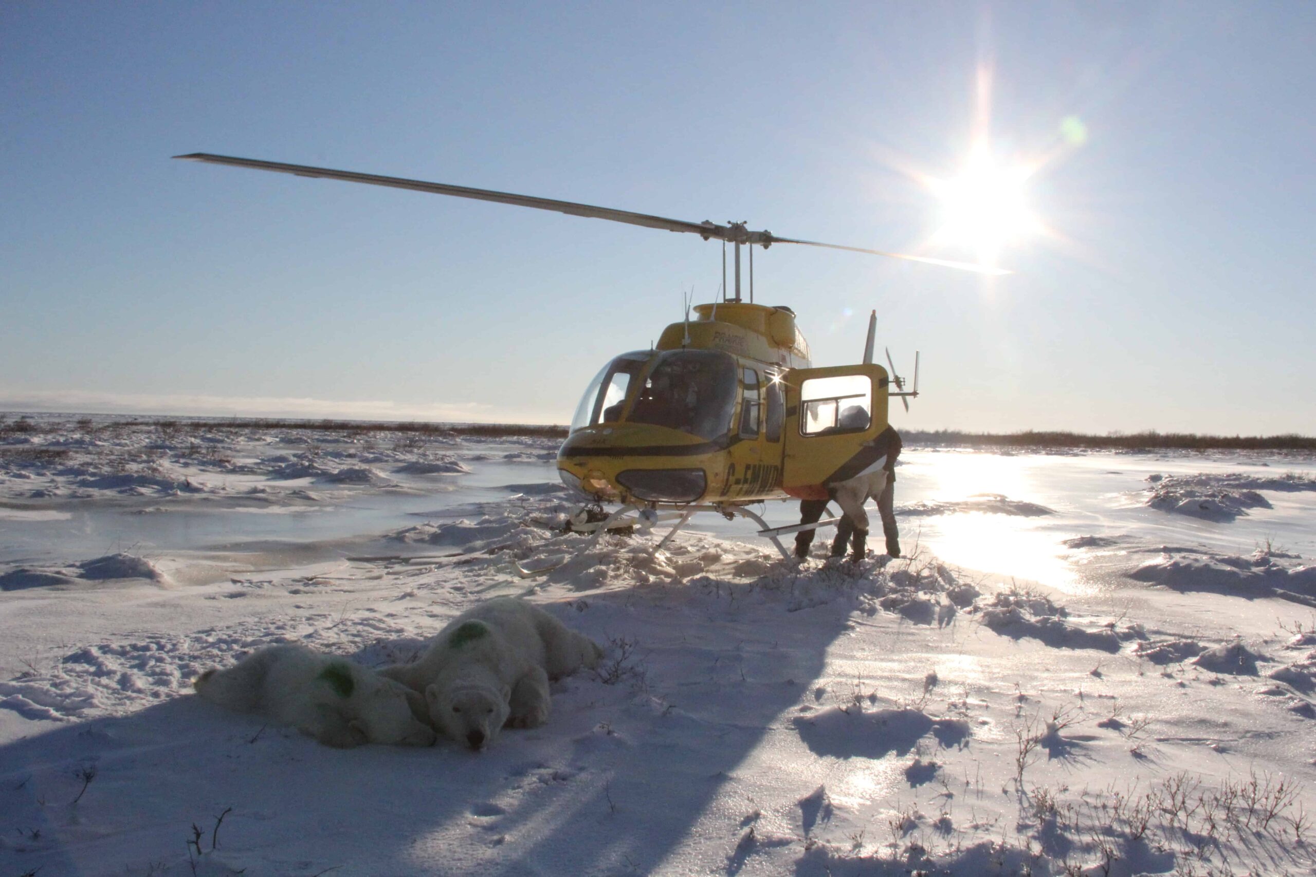 Some bears realize it won’t hurt them and, in rare cases, Wlock’s team uses rubber bullets to scare them away. In other cases, flying a helicopter over the bear may frighten it off.