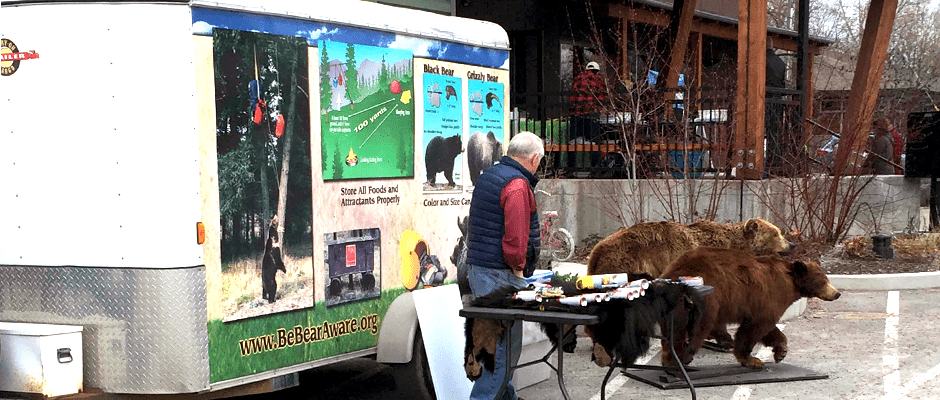 Jonathan Karlen, the student chapter’s incoming education and outreach coordinator, says the “Be Bear Aware” station was also a real hit. Participants could practice deploying inert canisters of bear pepper spray at realistic mounted bears.