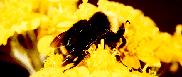 Header Image: A bumble bee feeds on a seaside woolly sunflower in the Landels-Hill Big Creek Reserve in California. Bumble bees rely on this plant during drought conditions, but lately they have been excluded from its flowers by non-native honey bees. ©Diane Thomson