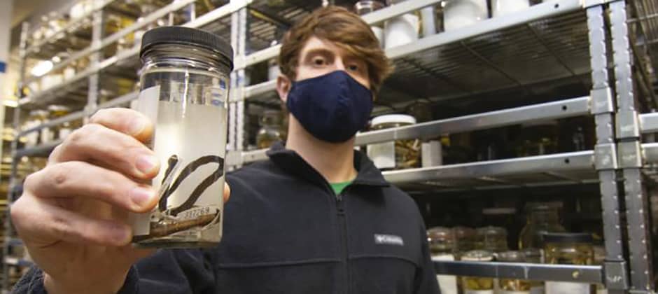 Using genetics and molecular analysis, researchers discovered a new snake species in a museum collection in Kansas. Native to the islands of Samar and Leyte in the Philippines, specimens of the newly described Waray dwarf burrowing snake (Levitonius mirus) were collected in 2006 and 2007 and preserved at the University of Kansas Biodiversity Institute and Natural History Museum. When University of Kansas graduate researcher Jeff Weinell decided to look at the snakes’ genetics using molecular analysis, he found they had been misidentified. “I knew this other group of small, burrowing snakes called Pseudorabdion — there are quite a few species in the Philippines — and I was interested in understanding the relationships among those snakes,” Weinell said in a press release. “So, I made a list of all the specimens we had in the museum of that group, and I started sequencing DNA for the tissues that were available.” He and his co-authors were surprised by their findings. The snake didn’t fall in the Pseudorabdion family. After further research, they determined the species hadn’t been documented before. They named it after Alan Leviton, a snake researcher at the California Academy of Sciences.