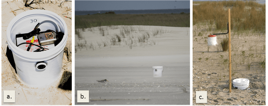 Video and audio recording equipment used to monitor incubating American oystercatchers and surrounding human activity at North Core Banks, Cape Lookout National Seashore in North Carolina. Image courtesy of Ted Simons.
