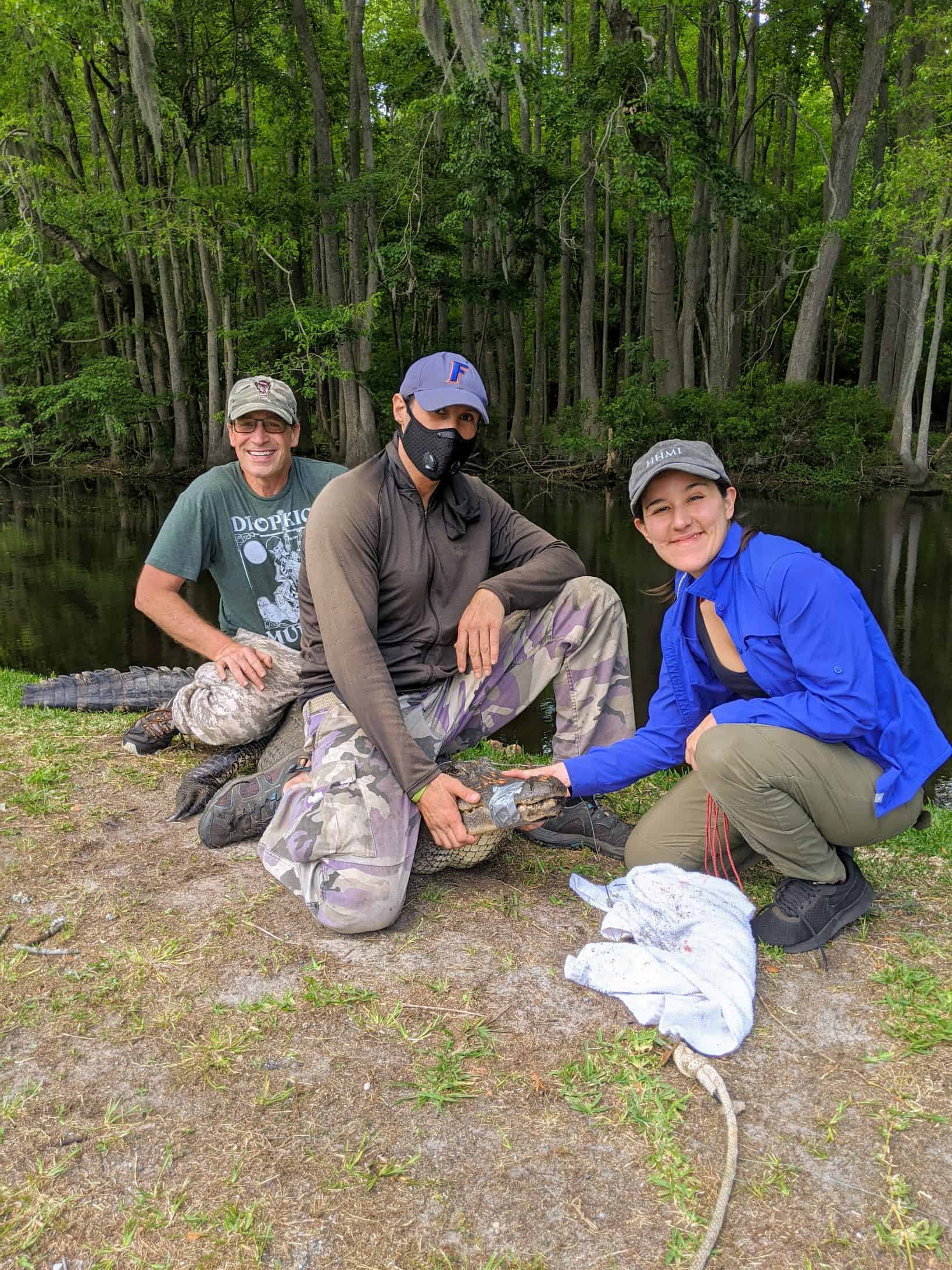 Getting ahold of the alligators was not an easy feat. After catching them with a heavy-duty rod and reel, teams of four to six people duct taped the alligators’ jaws closed, grabbed a blood sample, took measurements, removed the tape and released them. They did that 350 times, taking the samples back to the lab to analyze them for PFAS.