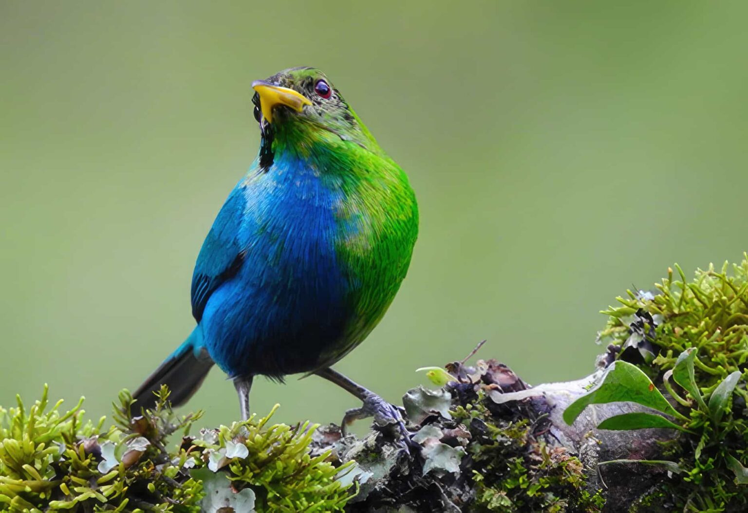 Hamish Spencer was supposed to be on vacation, but a birding trip in Colombia led to an encounter with an extremely rare bird—a green honeycreeper (Chlorophanes spiza) with green female plumage on one side and blue male plumage on the other.