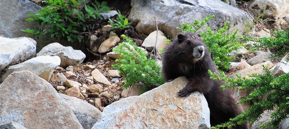 The marmots actually lived on the mountain since the 1940s before the resort existed, according to the Marmot Recovery Foundation, one of the partners involved in this strategy. When the resort began to clear forest for ski runs, it actually opened up more space for the marmots on Mount Washington. Plus, the summer months are relatively quiet on the human front, but just busy enough to provide the marmots a buffer zone from cougars or wolves.
