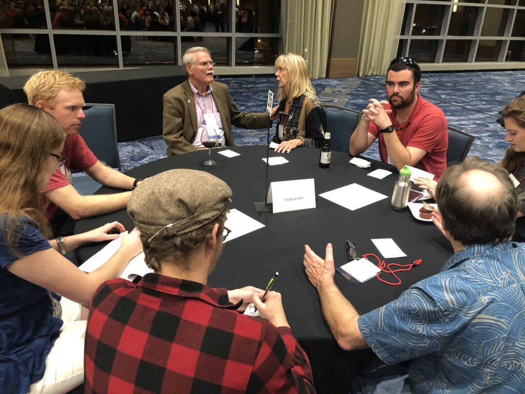 Jim Ramakka is one of those attendees with a higher number — one of the highest, in fact, having attended 24 annual TWS conferences. Ramakka, retired from the Bureau of Land Management, sat at the table for wildlifers interested in federal jobs. “I hope folks will get some sense of where they might be able to direct their careers, but learn from folks who have been in that position,” Ramakka said. “Also, I hope they learn how important The Wildlife Society is.”