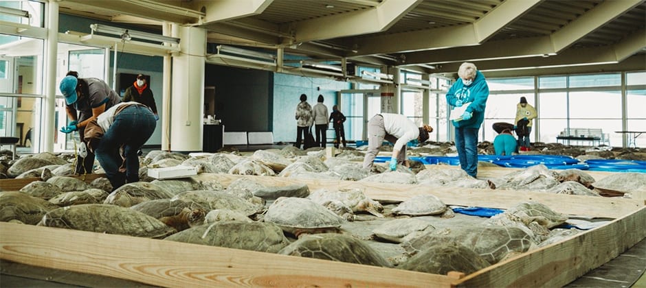 Thousands of sea turtles recently washed up along the Texas coastline after a winter storm caused temperatures to plummet. Unusually cold temperatures in the Gulf of Mexico caused turtles’ heartrates to slow, paralyzing them. Those paralyzed turtles are then at risk from predators, boat strikes and sometimes drowning. After the cold-stunning, volunteers, many of whom were also facing no power or running water due to the cold, came to the rescue of the endangered sea turtles. So far, the volunteers have rescued about 7,000 sea turtles including green (Chelonia mydas), loggerhead (Caretta caretta) and Kemp’s ridley (Lepidochelys kempii) sea turtles along the Texas coastline. All of those species are listed as either threatened or endangered under the Endangered Species Act.