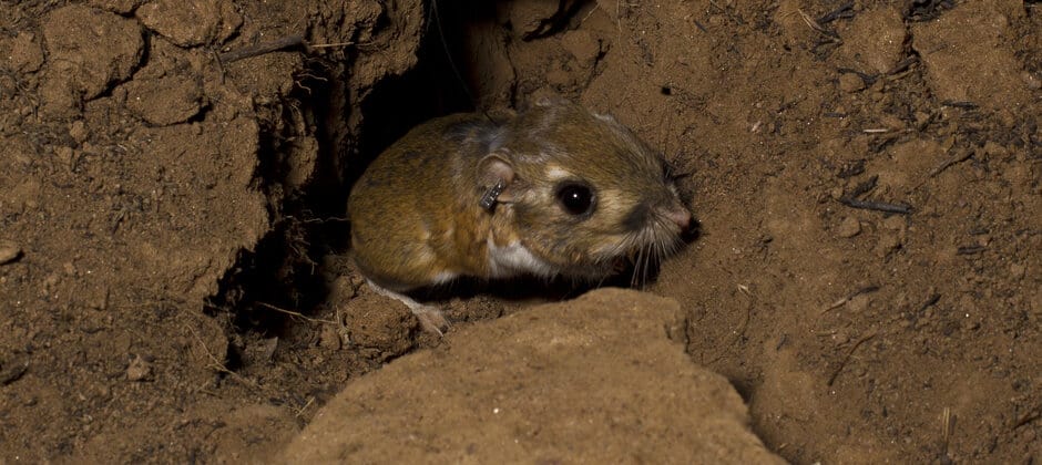 The team found that the kangaroo rats translocated with neighbors had 90% survival in those first three months. Some were eaten by barn owls (Tyto alba), while others dispersed out of the receiver site.