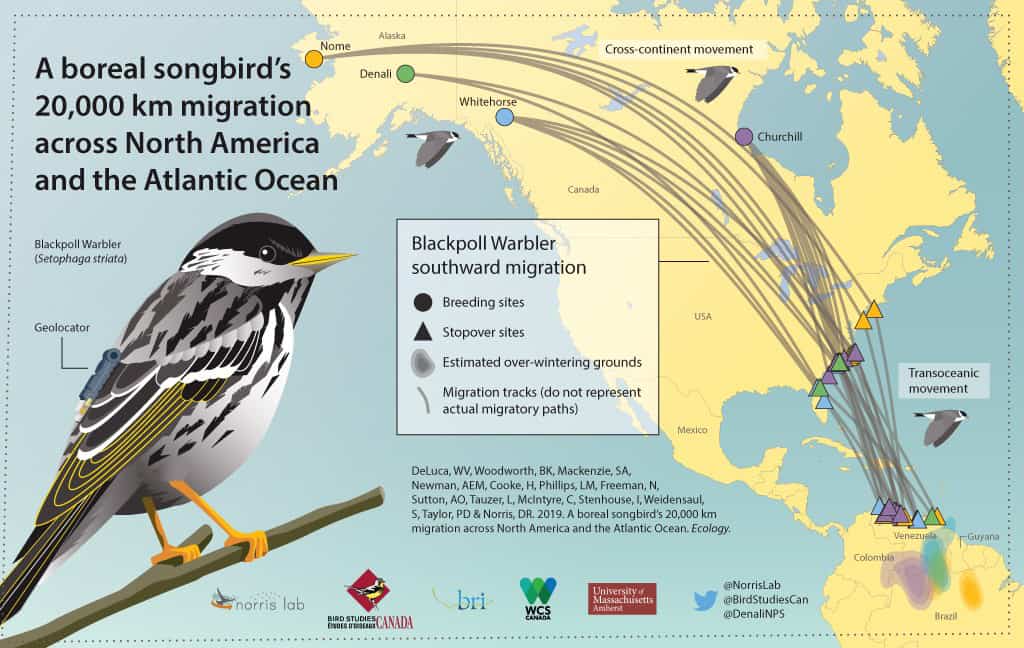 Half-ounce songbirds, blackpoll warblers (Setophaga striata) redefine the meaning of endurance in their epic trip from the northwestern edge of Alaska to the East Coast before continuing on to Venezuela, Colombia and Brazil.