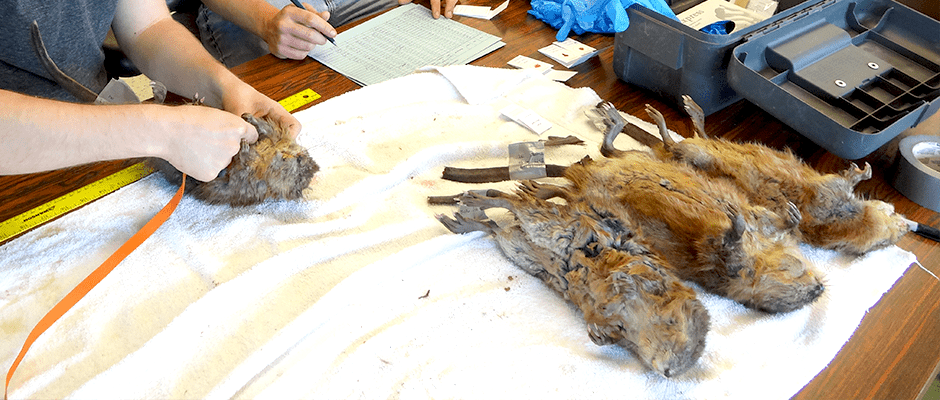 Hervey’s work features an effort to understand the muskrat (Ondatra zibethicus) populations of North Dakota using molecular tools. He worked with another student whose Master’s project consisted of gathering tissue samples from muskrats trapped at four different sites in the state. Hervey extracted DNA from the samples and compared the genetics of the individual muskrats.