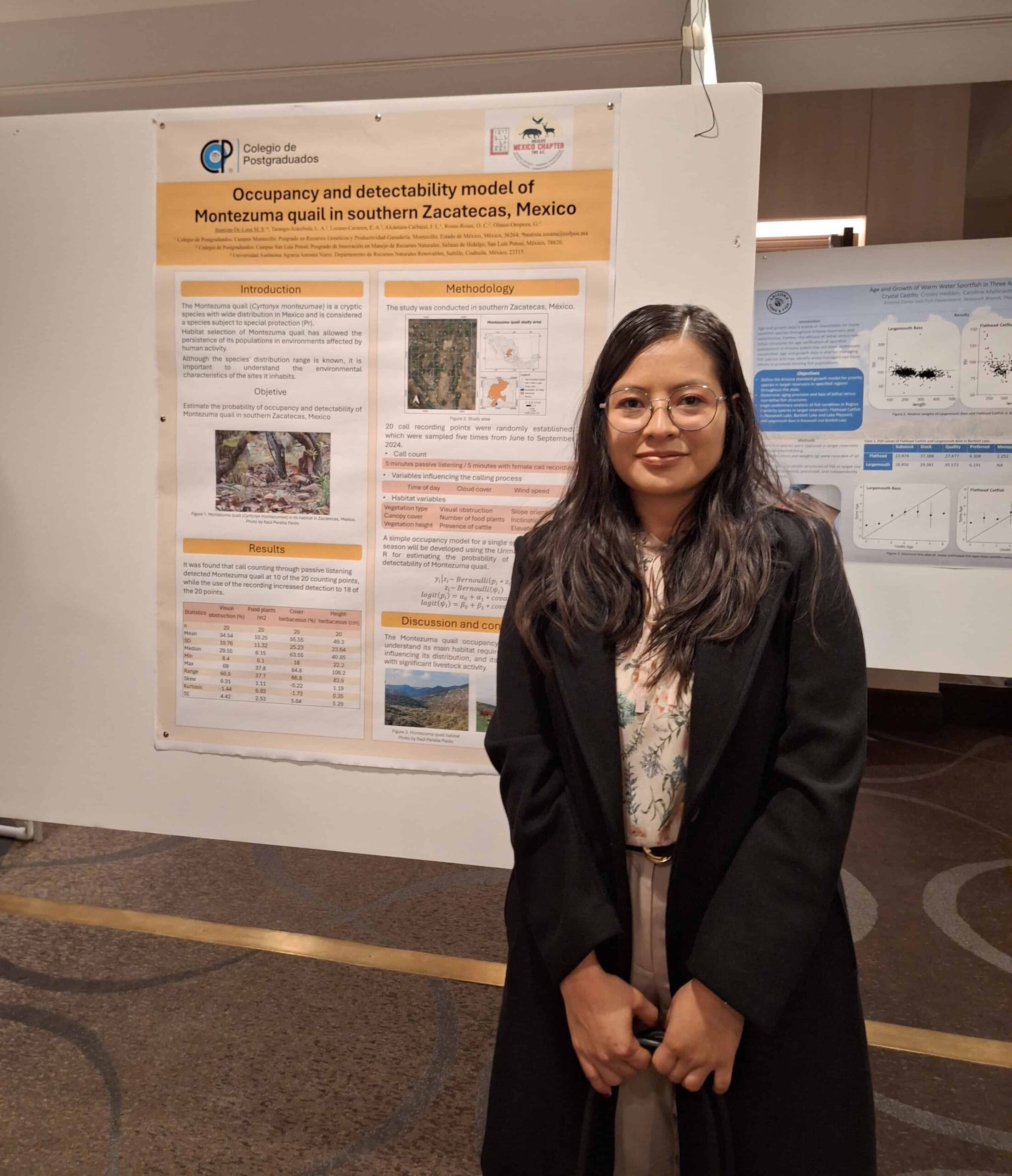 Susana Bautista De Luna is a doctoral student in wildlife science at the Colegio de Postgraduados, who presented on the Montezuma quail (Cyrtonyx montezumae) in southern Zacatecas and its presence in habitats affected by overgrazing at the conference. She appreciated the knowledge she gleaned through research seminars and workshops, including a wildlife capture and handling workshop focused on mammal trapping. “Attending the oral presentations allowed me to learn about the techniques that are employed to conduct research with diverse species, as well as the problems faced in developing them,” Bautista De Luna said.