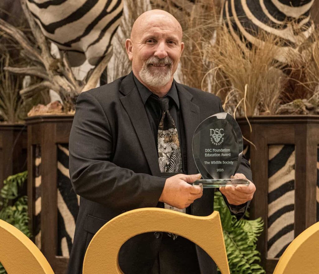 “Peer recognition is a true pinnacle of accomplishment for any individual or organization,” he said. “The Wildlife Society strives every day to be a leader in wildlife science and education and to serve as a technical resource for its members, partners, decision-makers, and the public. To be recognized with the Education Award by our partners at the Dallas Safari Club Foundation is truly an honor that is deeply appreciated and a motivator to continually improve on delivering our professional and educational services.”